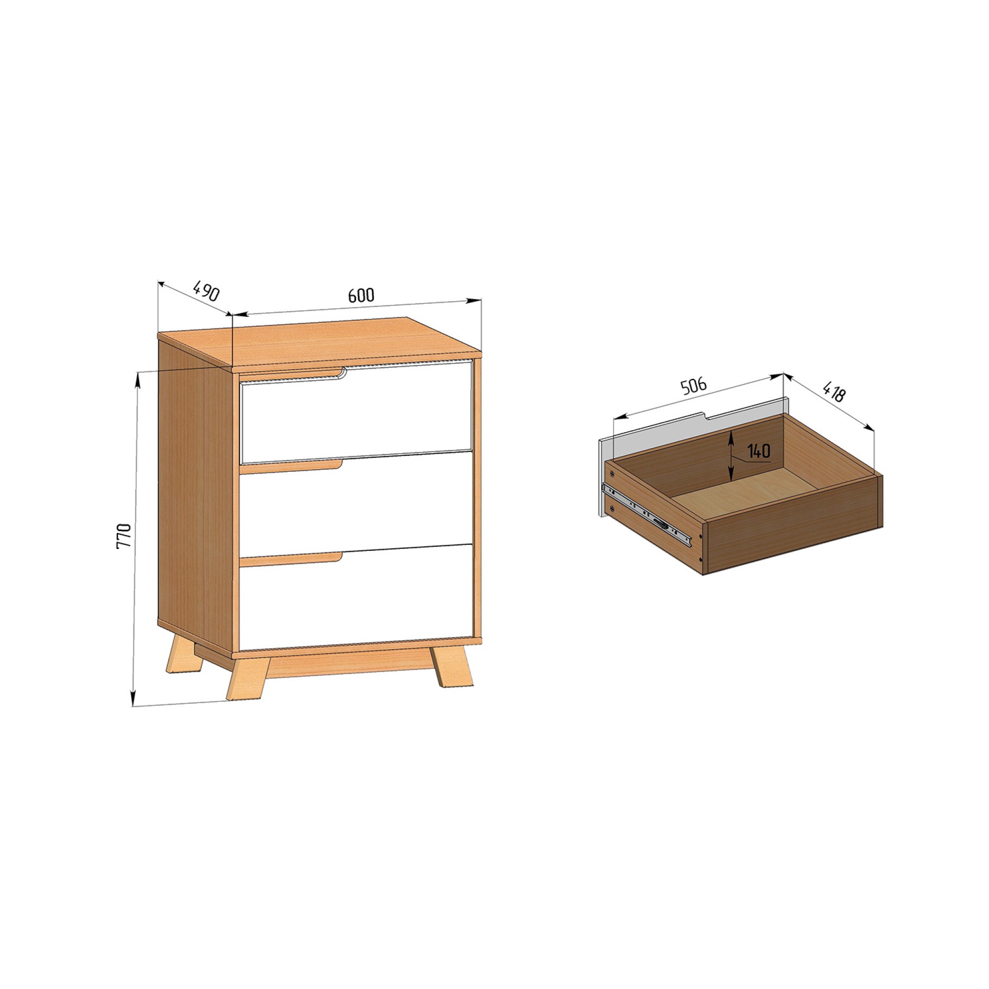- кількість висувних шухляд: 3